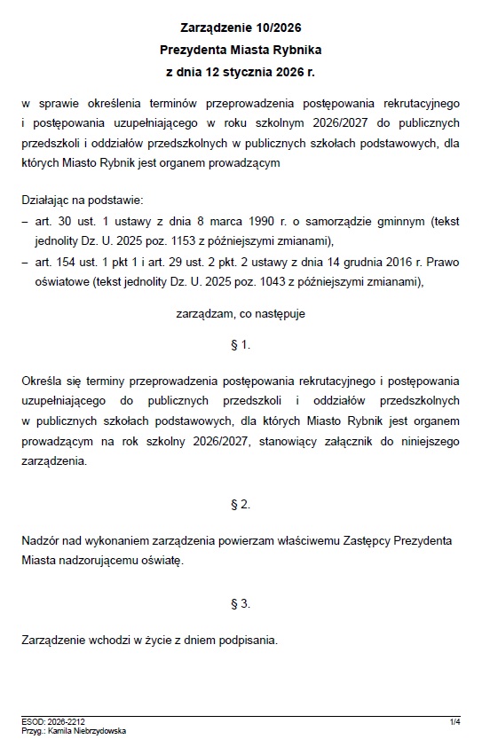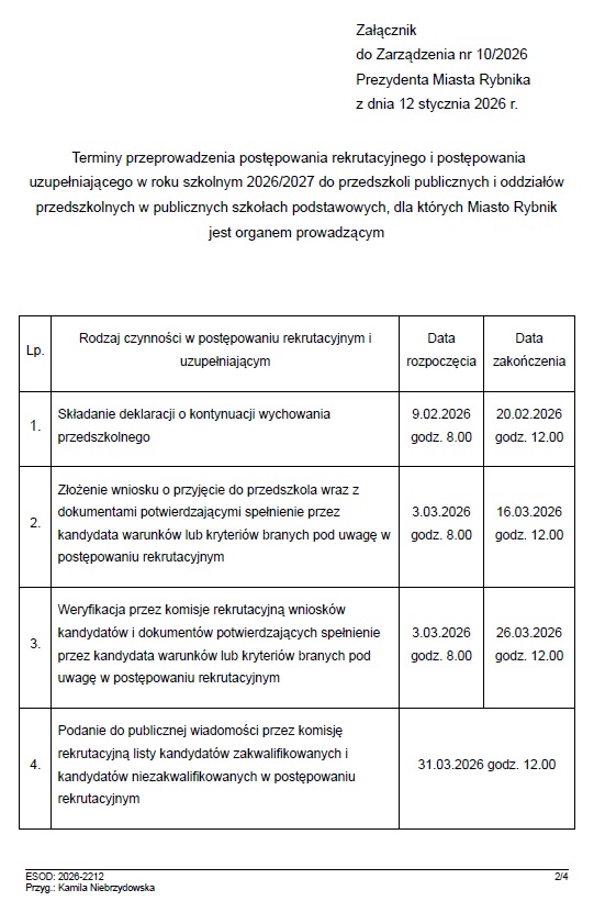 Zasady naboru do przedszkoli - Informacja z Miasta Rybnika