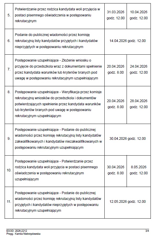 Deklaracja o woli kontynuowania wychowania przedszkolnego na rok szkolny 2026/2027